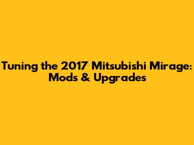 Tuning a 2017 Mitsubishi Mirage can be a fun and rewarding experience. Whether you're looking to improve performance, enhance aesthetics, or simply personalize your ride, there are plenty of modifications to choose from. Remember to prioritize safety and reliability when making modifications, and always do your research before making any changes. With the right mods, you can transform your Mirage into a unique and eye-catching ride that reflects your personal style. Happy tuning!