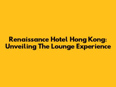 Renaissance Hotel Hong Kong: Unveiling The Lounge Experience