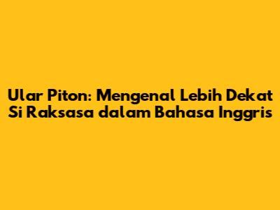 Hey guys! Pernahkah kalian terpukau dengan keindahan dan keunikan ular piton? Ular-ular raksasa ini memang punya daya tarik tersendiri, ya kan? Nah, dalam artikel ini, kita akan menyelami dunia ular piton, mulai dari mengenal mereka dalam bahasa Inggris, berbagai jenisnya, habitat aslinya, hingga cara merawatnya. So, siap-siap untuk belajar dan menambah wawasan tentang salah satu makhluk paling menarik di dunia satwa liar ini!
