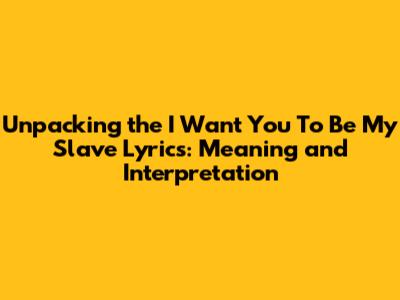 Unpacking The 'I Want You To Be My Slave' Lyrics: Meaning And Interpretation