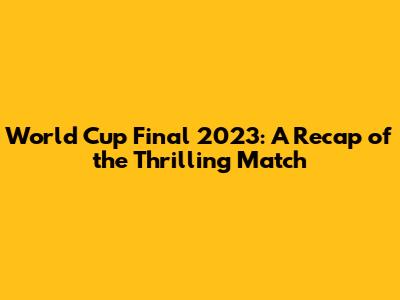 World Cup Final 2023: Scores, Highlights, And More!