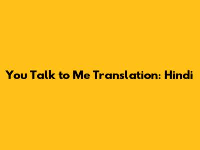 You Talk To Me: Hindi Translation And Usage