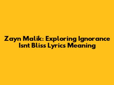 Zayn Malik: Exploring 'Ignorance Isn't Bliss' Lyrics Meaning
