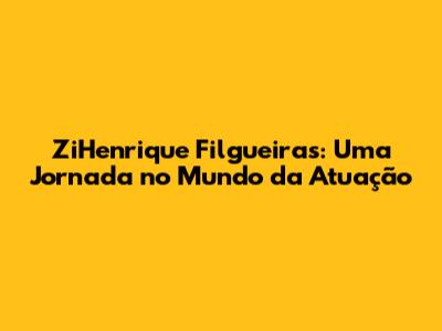 ZiHenrique Filgueiras: Uma Jornada No Mundo Da Atuação